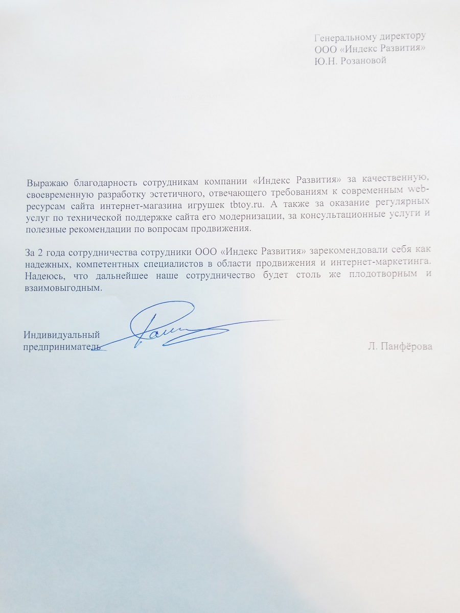 Выражаю благодарность сотрудникам компании "Идекс Развития"...